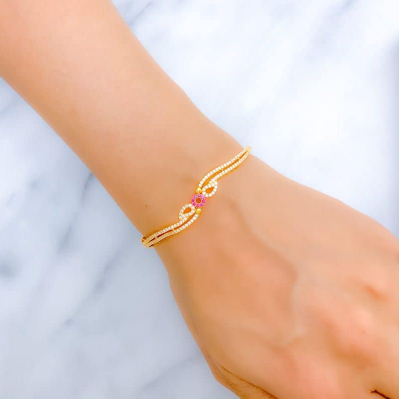 Classy Pink Flower Bangle Bracelet