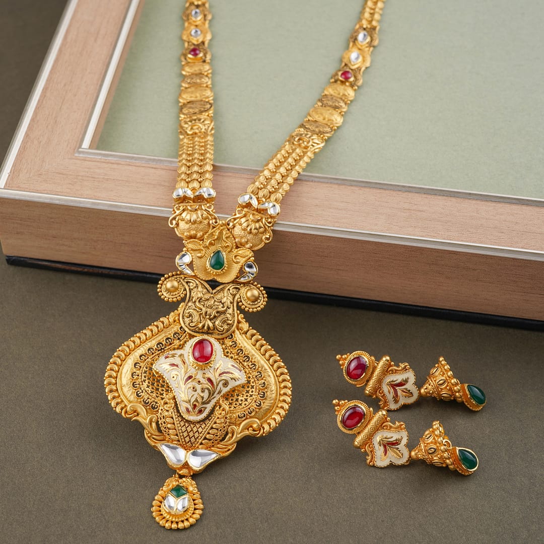 Previous Jewellery Next Jewellery Long Antique Ranihar Sets 72.2 Gm Categories: Gold Jewellery, Long Sets, Sets Jewellery SpecificationsGross Weight in Grams: 76.23Net Weight in Grams: 72.16Metal: Gold 916Diamond Color: N.ADiamond Clarity: N.A Description Description Code : LS1261 Metal : Gold Purity : 22K Gross Weight :76.23 Net Weight : 72.16 Related products Quick View Quick View Blue Star Adorned Oxidized Set 100.8 Gm Add to Orderlist Quick View Quick View Bridal Peacock CZ Necklace Set 80.0 Gm Add to Orderlist Quick View Quick View Beautiful Traditional Necklace Set 19.3 Gm Add to Orderlist Quick View Quick View Attractive MultiColor Orb Necklace 10.7 Gm Add to Orderlist